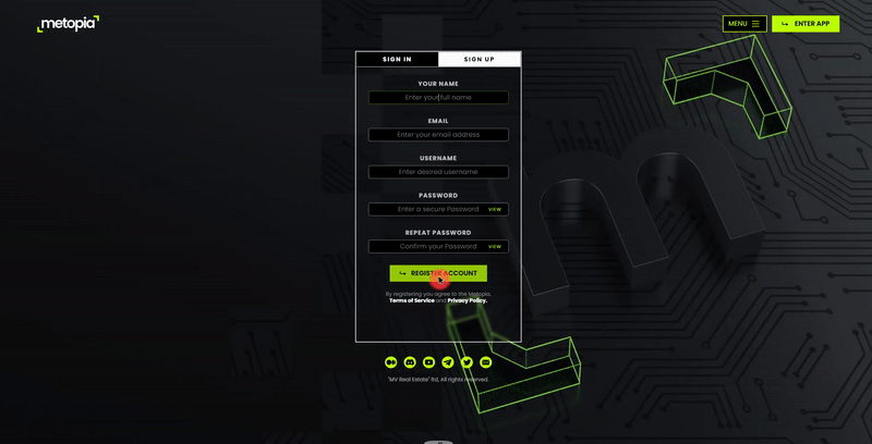 3\) **Enter the required details** in the empty fields and **click "Register Account"**.&#x20;